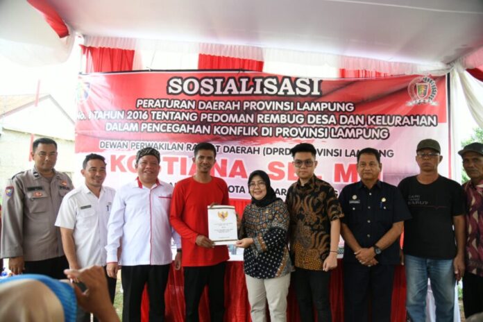 infogeh.co, Bandar Lampung – Anggota DPRD Provinsi Lampung Kostiana menggelar Sosialisasi Peraturan Daerah (Sosper) Perda Nomor 1 Tahun 2016 tentang Pedoman Rembug Desa Dan Kelurahan Dalam Pencegahan Konflik di Provinsi Lampung.