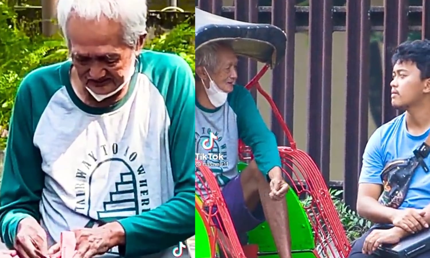Dalam video tersebut, terlihat seorang bapak tua yang sudah sangat ringkih sedang duduk dalam becaknya serta seorang pemuda yang diduga sedang sakit.