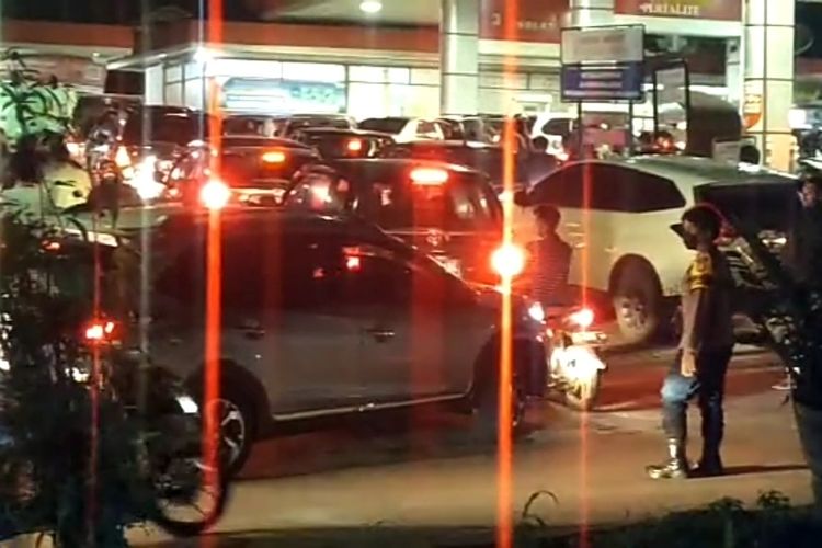 Berdasarkan pantauan di SPBU yang berada di Jalan Teuku Cik Ditiro, Kecamatan Kemiling, Bandar Lampung pada Rabu (31/8/2022) hingga pukul 21.30 WIB, antrean kendaraan masih mengular.