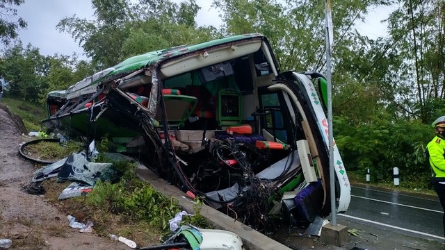 infogeh.co, Bantul – Bus pariwisata asal Solo AB 1507 EH mengalami kecelakaan dan menghantam tebing Bukit Bego di ruas jalan Dlingo-Imogiri. Akibat insiden tersebut 13 orang dinyatakan meninggal dunia. Sopir bus yang awalnya sempat keluar dari bodi bus juga dikabarkan meninggal dunia.