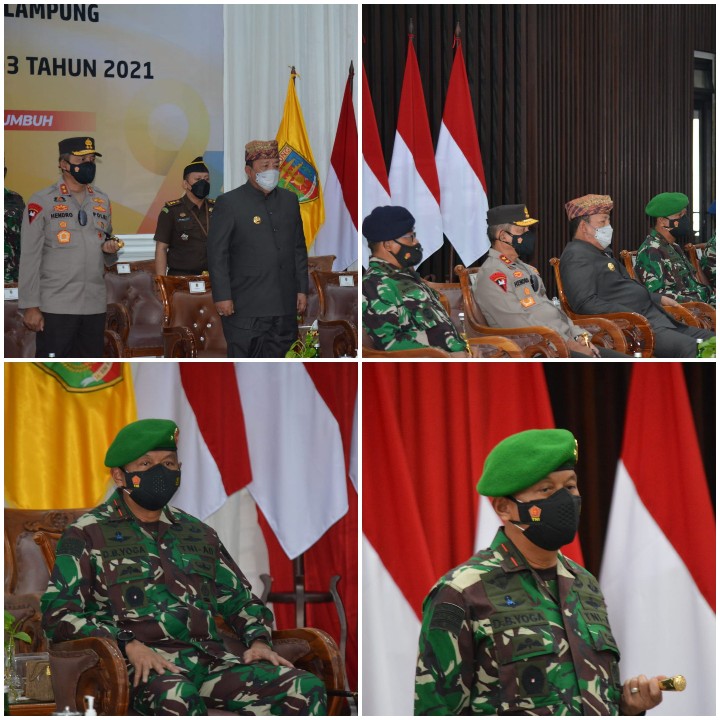 Bandar Lampung (Radarnusantara.co)- Komandan Korem 043/Gatam Brigjen TNI Drajad Brima Yoga,S.I.P.,M.H, Bersama Gubernur Lampung Arinal Djunaidi, Kapolda Lampung Irjen Pol Hendro Sugiatno dan Unsur Forkopimda Provinsi Lampung, mengikuti Upacara Peringatan Hari Sumpah Pemuda ke-93 Tahun 2021, secara Virtual bertempat di Mahan Agung, jl. Dr. Susilo Bandar Lampung, kamis (28/10/21).
