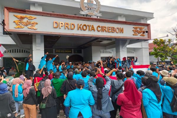Massa ingin menemui ketua DPRD Kota Cirebon dan menolak jika ditemui perwakilan anggota DPRD Kota Cirebon.