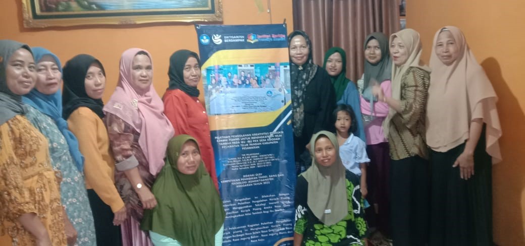 Pengolahan keripik pisang diharapkan dapat memberikan nilai tambah ekonomi bagi ibu ibu Pkk hususnya ibu Rumah Tangga yang ingin mendapatkan tambahan pendapatan melalui pengolahan keripik pisang yang harapannya bisa membuka peluang untuk berwira usaha bagi masyarakat Kelurahan Sidodadi Kecamatan Teluk Pandan Pesawaran.