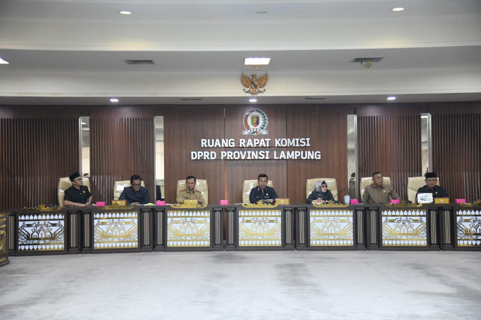 Hadir dalam kesempatan tersebut Asisten III Bidang Administrasi Umum Provinsi Lampung, Bapak Dr. Senen Mustakim, S.Sos., M.Si, juga Anggota Komisi V DPRD Provinsi Lampung, Bapak Muhammad Junaidi, SH, Bapak Ketut Rameo, Bapak Hi. Puji Sartono, Bapak M. Syukron Muchtar, LC, M.Ag, Ibu Ir. Mardiana, ST., MT, dan Ibu Hj. Elly Wahyuni, SE., MM.