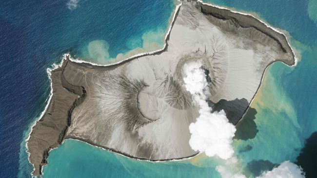 Gunung berapi Hunga-Tonga-Hunga-Ha’apai meletus pertama kali pada Jumat (14/1). Letusan melemparkan gumpalan abu sejauh 20 km ke udara.
