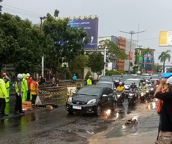 Antrean kendaraan itu terjadi mulai dari fly over MBK hingga depan Pascasarjana Universitas Bandar Lampung. Kemacetan itu dipicu jalan amblas dari arah Tanjungkarang ke Rajabasa, tepatnya di dekat Fitrinof.