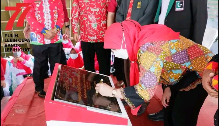 Infogeh.co, Bandar Lampung – Walikota Bandar Lampung, Hj. Eva Dwiana Menghadiri Peletakan Batu Pertama Pembangunan Masjid Kubah Rantai Emas Al-Barokah di Masjid Kubah Rantai Emas Al-Barokah Jl. Durian I No. 58 Way Dadi Baru Sukarame Bandar Lampung, Jum’at (19/08/2022).