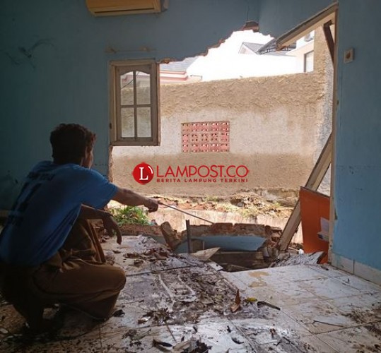 infogeh.co, Bandar Lampung – Hujan deras yang mengguyur hampir seluruh wilayah Bandar Lampung pada Jumat malam, mengakibatkan tembok kamar mandi sebuah rumah ambrol.
