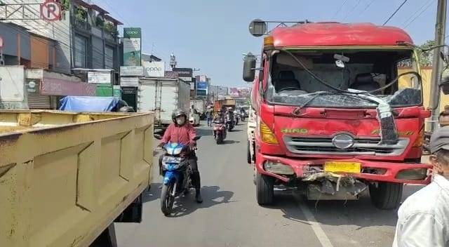 infogeh.co, Bandung – Seorang pengendara terjepit kabin truk dalam kecelakaan lalu lintas di ruas Jalan Raya Bandung, Kampung Asrama, Desa Ciranjang, Kecamatan Ciranjang, Kabupaten Cianjur, Jawa Barat, Selasa (26/7).