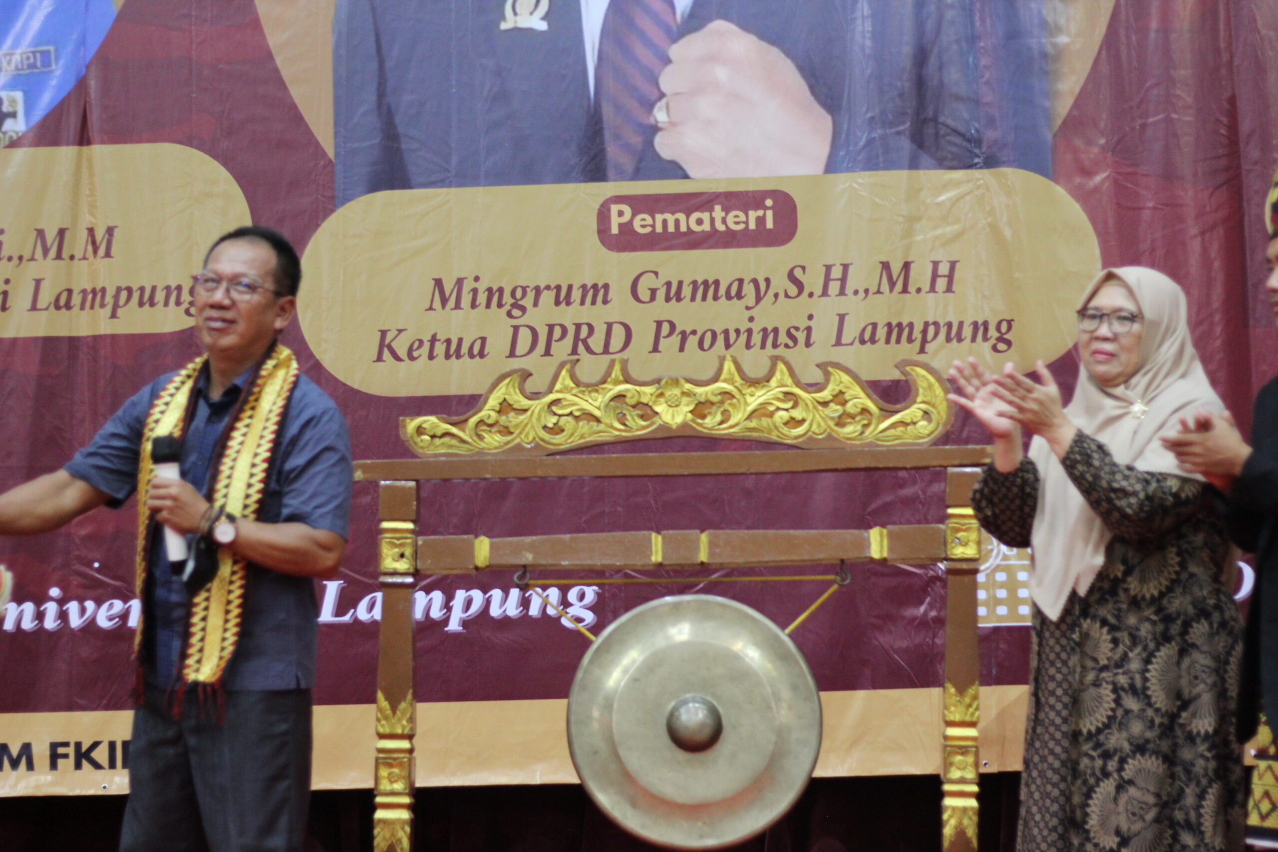 Infogeh.co, Lampung – Ketua DPRD Lampung membuka kegiatan Stadium General 2022 dengan tema “Pancasila Sebagai Penguat Karakter Pendidikan Bangsa Yang Berbudaya” yang diselenggarakan oleh BEM FKIP Universitas Lampung di Gedung GSG Unila, Minggu (16/10).