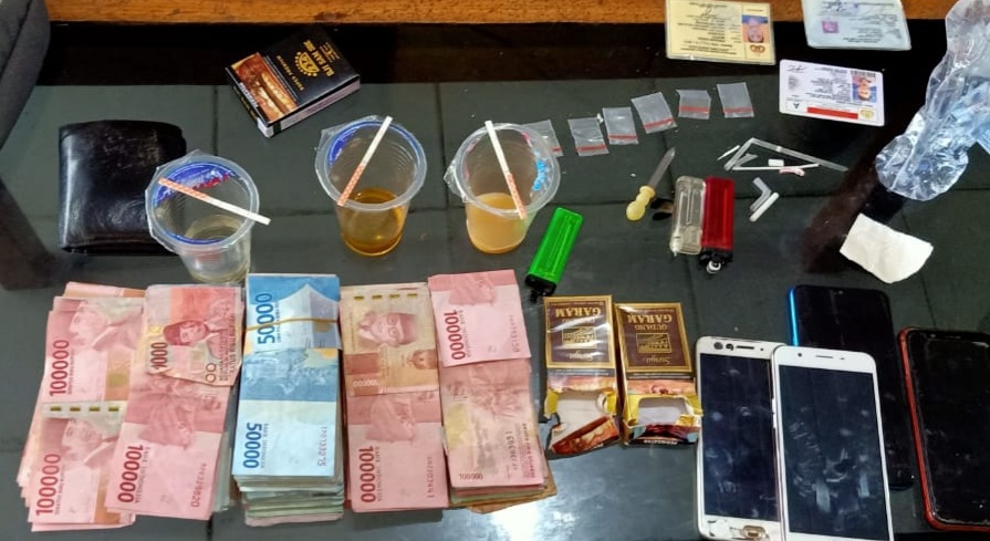 Dalam penangkapan itu, turut diamankan barang bukti 6 plastik klip sabu sisa pakai, alat hisap sabu/bong, kaca pirex, 4 korek api gas, 2 kotak rokok, 5 potongan pipet, tas warna abu-abu berisi uang Rp32.292.000,- dan dompet berisi uang Rp2,5 juta dan 4 handphone.