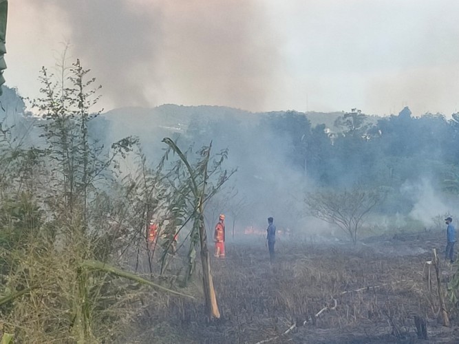 infogeh.co, Bandarlampung – Lahan kebun pisang di Jalan Sumpah Pemuda, Lapangan Hutan Wilayah PKOR, Kelurahan Perumnas Way Halim, Bandar Lampung, terbakar, Sabtu, 9 April 2022 pukul 15.50 WIB.