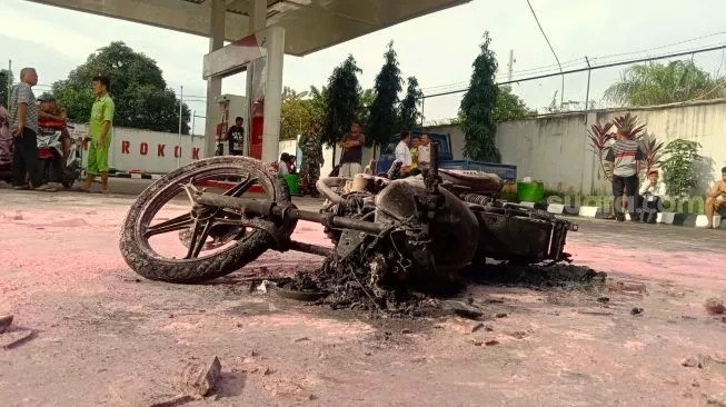Infogeh.co, Lampung Timur – Satu unit sepeda motor terbakar saat mengisi bahan bakar minyak (BBM) di Stasiun Pengisian Bahan Bakar Umum (SPBU) 24 341 119 Way Jepara, Kabupaten Lampung Timur, Sabtu (8/10/2022) pagi. Terbakarnya sepeda motor sempat membuat panik karyawan SPBU dan warga yang sedang antre mengisi BBM.