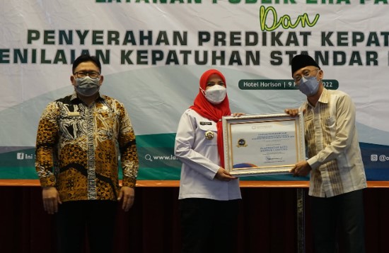 Sementara itu, Pemerintah Kota Bandar Lampung mendapatkan Piagam Penghargaan predikat kepatuhan tinggi standar pelayanan publik tahun 2021 dari OMBUDSMAN Republik Indonesia Perwakilan Lampung.