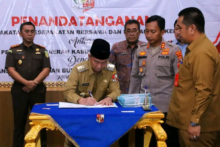 Penandatanganan dilakukan langsung oleh Bupati Lampung Utara Hi. Budi Utomo, S.E., M.M., bersama 12 Kepala Instansi Vertikal dan BUMN di Lampung Utara. Yakni, Kapolres Lampung Utara, Kepala Kejaksaan Negeri Lampung Utara, Kepala Kanwil Direktorat Pajak Lampung dan Bengkulu, Kepala BNN Waykanan dan Lampung Utara, Kepala Kantor Pertanahan Lampung Utara, Kepala Kementerian Agama Lampung Utara, Kalapas Kelas IIA Kotabumi, Kepala Kantor Imigrasi Kelas II Kotabumi, Kepala Kantor UPTD Pengelolaan dan Pendapatan Wilayah VI Kotabumi, Kepala PT Taspen Bandar Lampung, Kepala BPJS Kesehatan Kotabumi, Kepala PT Pos Indonesia.