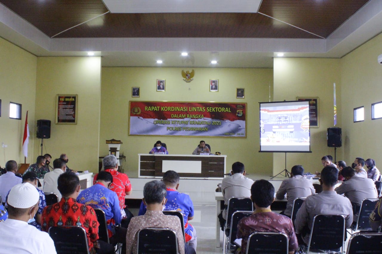 Dalam sambutannya Kapolres Pesawaran menyampaikan, kegiatan Rapat Kordinasi lintas sektoral dalam rangka mempersiapkan Operasi Ketupat Krakatau 2021 Polres Pesawaran yang bertujuan untuk memberitahukan kepada seluruh pemangku kebijakan di Kabupaten Pesawaran untuk dapat meninjau transisi menjadi Kabupaten berpola PPKM.