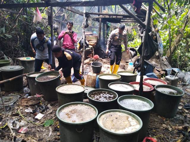 “Karena lokasinya jauh dan medannya berbukit, jadi yang bisa diangkut seadanya saja ada ratusan liter, yang ainnya kita musnahkan ditempat disertai dengan dokumentasi pemusnahan,” ujar Sumarso.