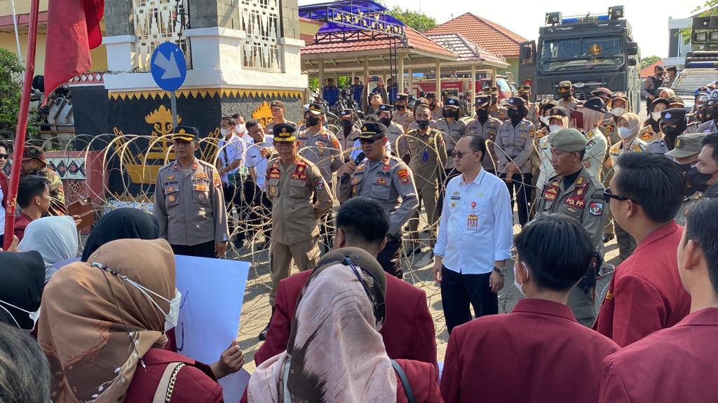 Infogeh.co, Kotabumi – Polres Lampung Utara mengamankan aksi damai menolak kenaikan BBM Ikatan Mahasiswa Muhammadiyah (IMM) Kotabumi yang berlangsung di halaman Pemda dan DPRD Lampung Utara, Rabu (14/9/2022).