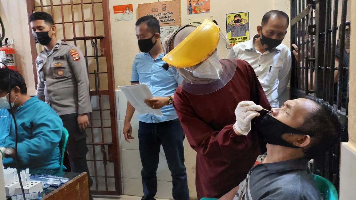Pelaksanaan swab antigen Covid-19 dipimpin langsung Kasat Tahti Iptu Bambang Sugiono guna memastikan para tahanan dalam keadaan sehat, tidak terpapar Covid-19.