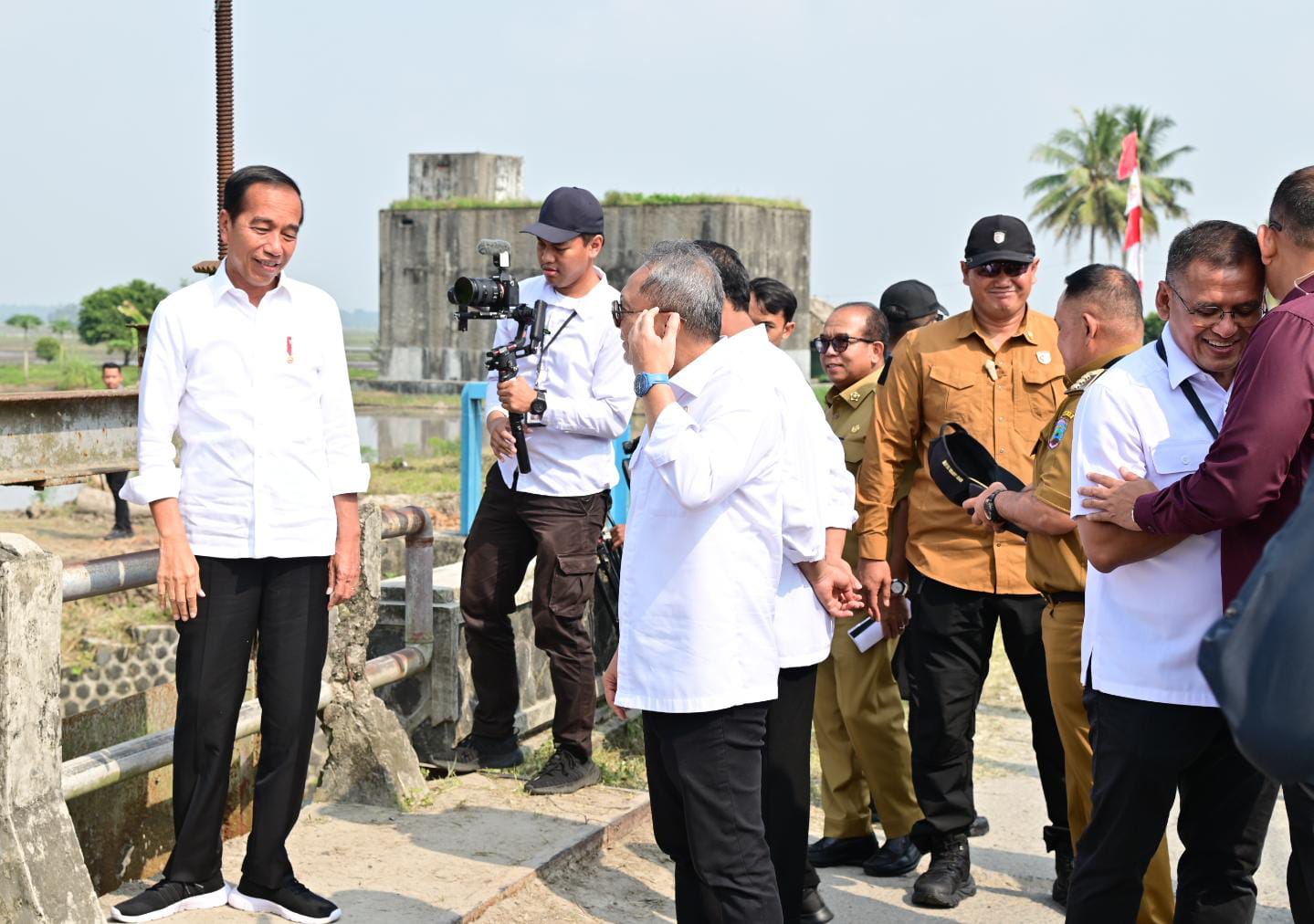 Saat itu, Presiden Jokowi berhenti sejenak melihat jalan yang rusak dan berlubang. “Oh ngecek jalan tadi, jalannya kan tadi lubang-lubang banyak yang rusak,” ungkap Jokowi, usai memberikan bantuan pompa air sawah tadah hujan kepada petani di Sragi Lamsel.