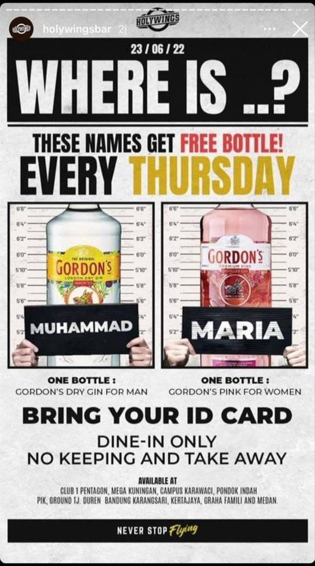 Holywings sebelumnya mengunggah promosi minuman beralkohol gratis bagi pengunjung yang memiliki nama Muhammad dan Maria. Promosi tersebut diunggah di media sosial dan viral.