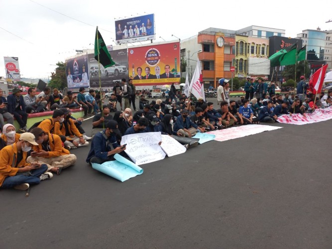 infogeh.co, Bandar Lampung – Puluhan mahasiswa menggelar aksi damai di tugu Adipura, Bandar Lampung. Aksi damai itu membahas tiga isu yakni hari buruh internasional, hari pendidikan nasional (Hardiknas), dan 24 tahun reformasi.