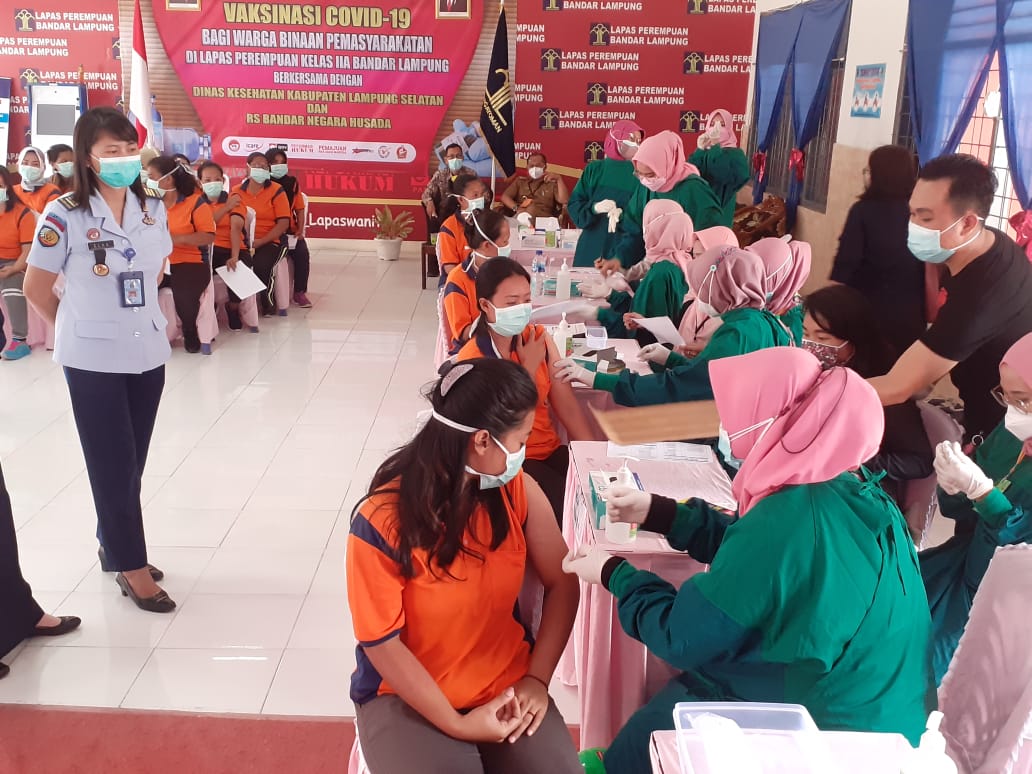 Radarnusantara.co (Bandar Lampung) – Sebanyak 258 warga binaan pemasyarakatan (WBP) Perempuan kelas IIA Bandar Lampung menjalani vaksinasi Covid-19 dosis pertama.