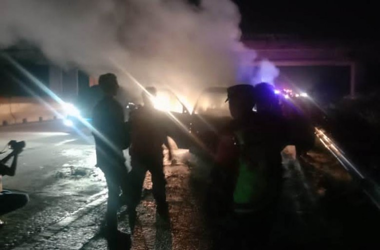 infogeh.co, Lampung Selatan – Satu unit minibus terbakar di Jalan Tol Trans Sumatera (JTTS) KM 18+800 jalur A, Kecamatan Penengahan, Lampung Selatan, Sabtu 30 April 2022, sekitar pukul 21.00 WIB. Kejadian tersebut diduga karena mobil minibus mengalami korsleting,