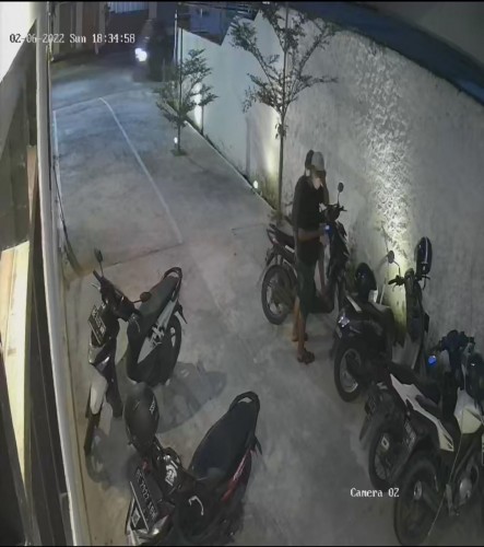 Aksi itu terekam camera CCTV pada pukul 16:30 wib, dua orang pria datang menggunakan motor metik tanpa pelat nomor polisi. Sebelum menggasak motor, mereka melihat situasi sekitar.