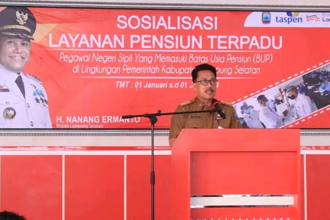 infogeh.co, Kalianda – Sekretaris Daerah Kabupaten Lampung Selatan Thamrin, S.Sos, MM membuka secara resmi Sosialisasi Layanan Pensiun Terpadu Tahap I tahun 2023.
