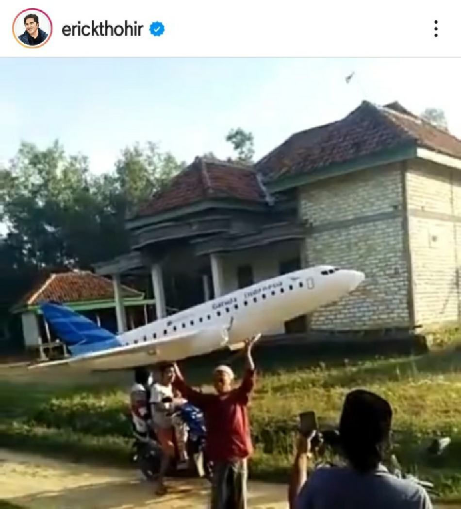 Dalam kesempatan ini, Erick menyerahkan pesawat miniatur Garuda Indonesia dan jaket kepada Humaidi. Tak sampai di sana, Humaidi juga menerima bantuan modal usaha sebesar Rp 50 juta.