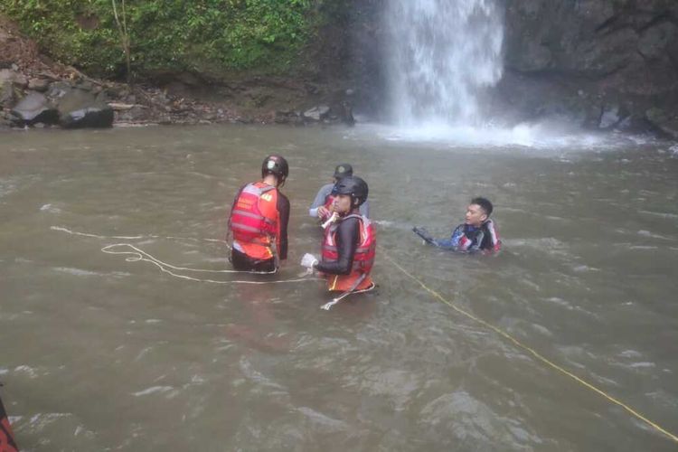 Namun, arus yang kuat akibat terjangan bah yang datang tiba-tiba membuat korban terlepas dan tenggelam. Karena kondisi tidak memungkinkan dan faktor keselamatan, akhirnya warga kembali naik dari air terjun.