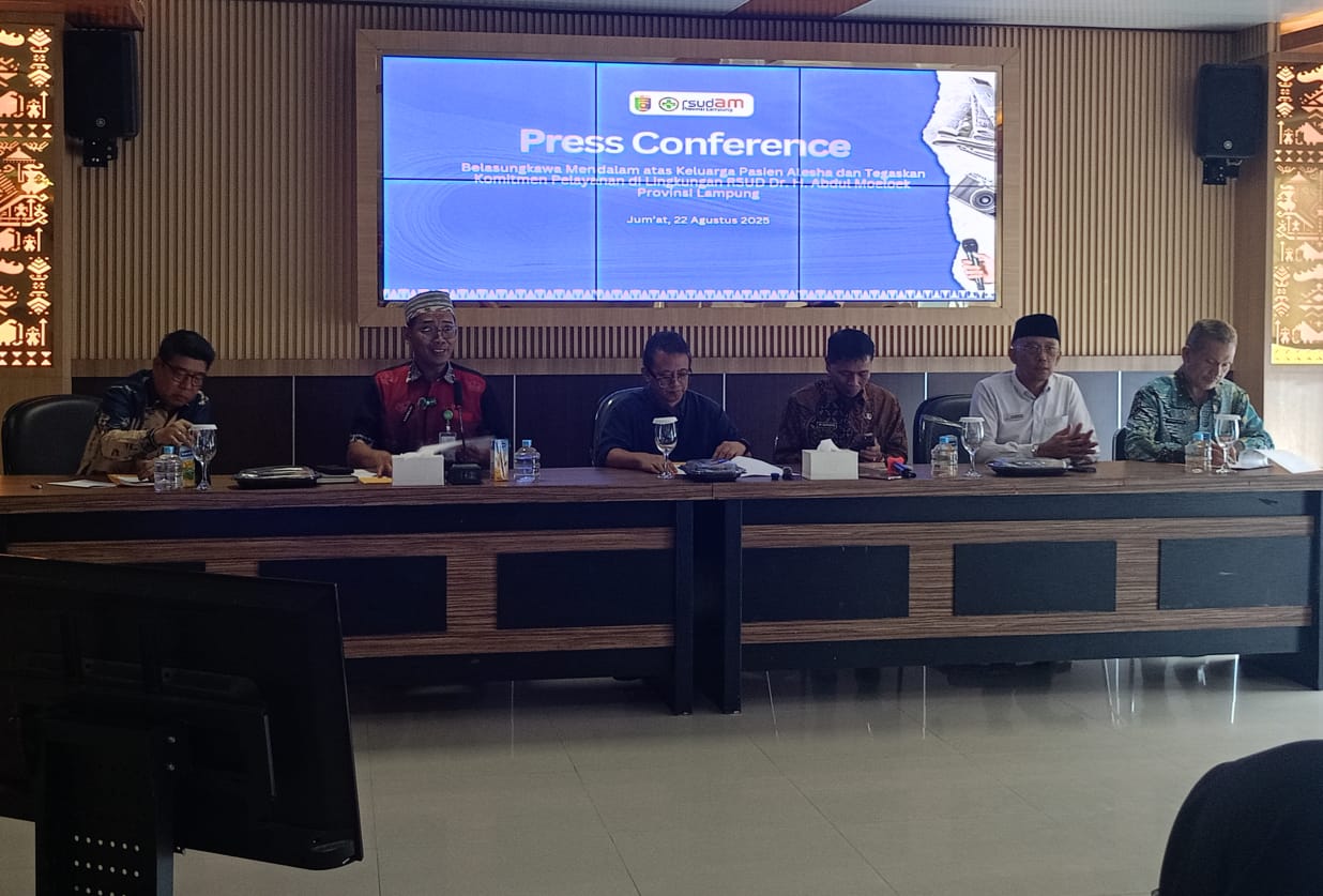 infogeh.com, Bandar Lampung – Manajemen Rumah Sakit Umum Daerah Abdul Moeloek (RSUDAM) Lampung menyampaikan duka cita mendalam atas wafatnya ananda Alesha. Pelaksana tugas (Plt) Wakil Direktur Keperawatan, Pelayanan, dan Penunjang Medik RSUDAM Lampung, dr. Yusmaidi, menegaskan bahwa pihak rumah sakit memberikan perhatian serius terhadap setiap informasi dan keluhan yang disampaikan masyarakat.