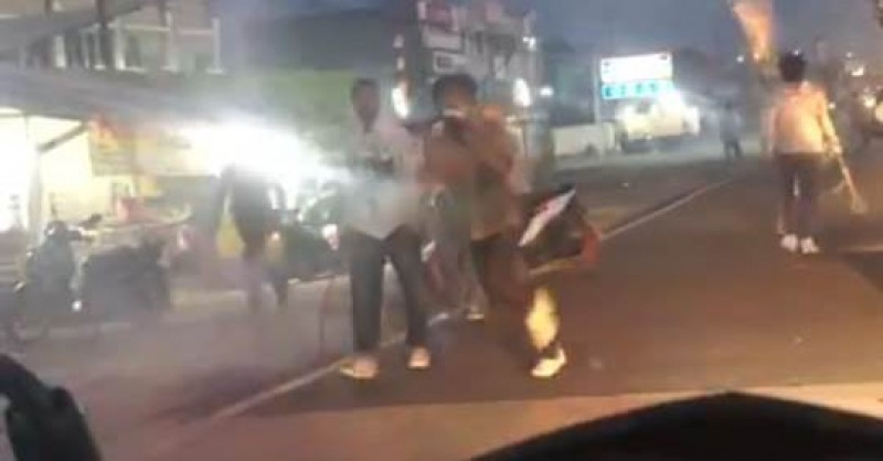 Selain membawa sajam, puluhan pelajar itu menyerang menggunakan kembang api.
