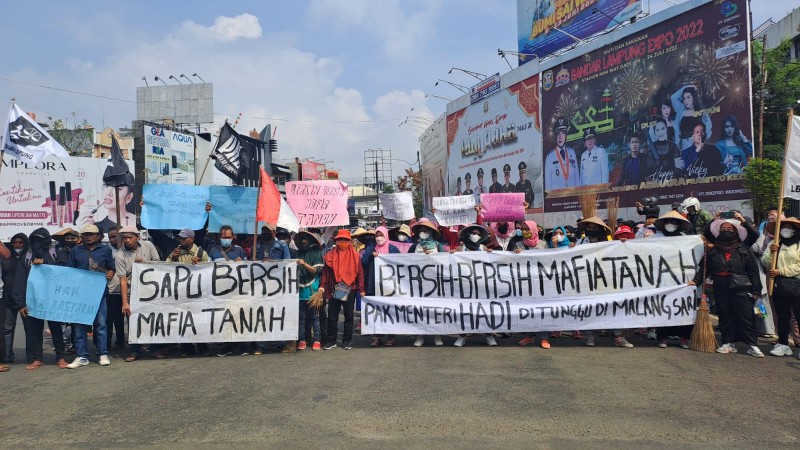 Masyarakat Desa Malangsari, Kecamatan Tanjung Sari, Kabupaten Lampung Selatan tersebut meminta pihak kepolisian mengusut tuntas mafia tanah. Ini seperti dalam poster dan banner yang dibawa merekadan bentangkan, salah satunya bertuliskan “Usut Tuntas Mafia Tanah”.