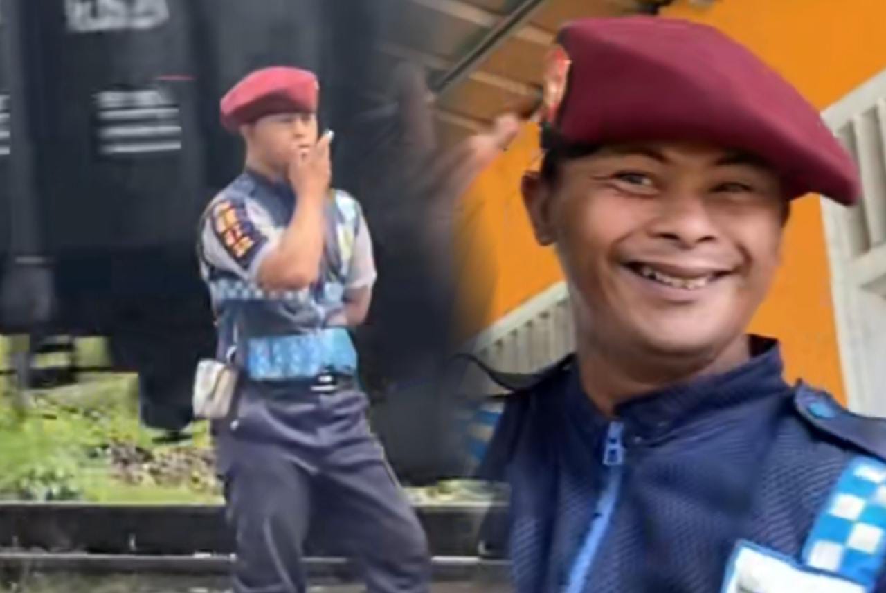 Pasalnya, dalam video yang diposting di akun @sanaklampung08, terlihat lelaki berbaret merah sigap menjaga perlintasan kereta api.