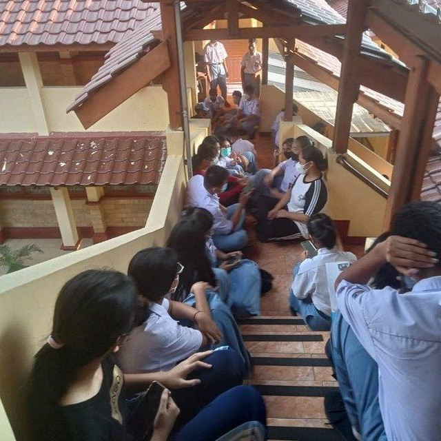 Dalam unggahan foto itu dinarasikan bahwa para siswa terpaksa berkegiatan di tangga dan selasar karena tidak diberi ruang kelas oleh pihak sekolah. Peristiwa itu disebut-sebut terjadi di SMA Negeri 2 Depok.