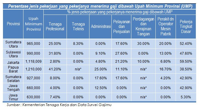 Berikut data lengkap 10 provinsi dengan upah rata-rata pekerja terendah se-Indonesia berdasarkan data yang diakses melalui website resmi BPS RI pada Minggu, 20 November 2022 pukul 12.30 wib :