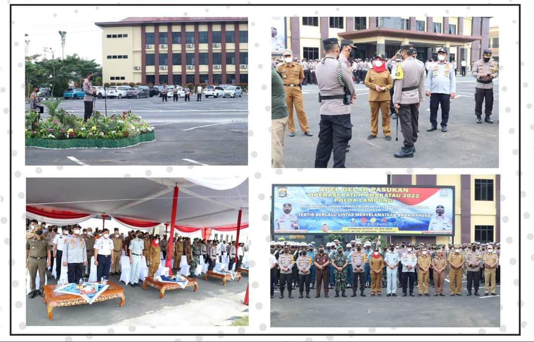 Infogeh.co, Bandar Lampung – Walikota Bandar Lampung Hj. Eva Dwiana menghadiri Apel Gelar Pasukan Operasi “Patuh Krakatau 2022” yang digelar oleh Polda Lampung di Lapangan Apel Mapolda Baru Lampung, Senin (13/6/2022).