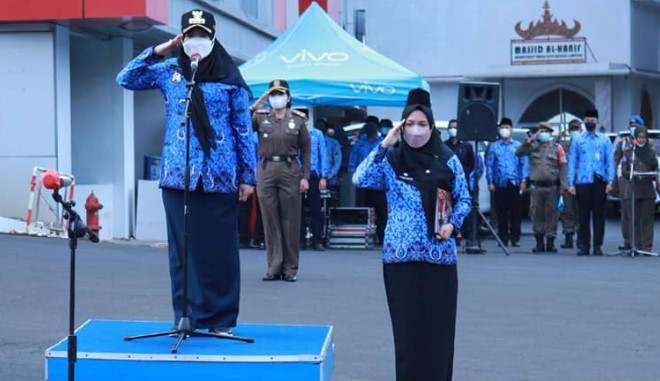 Apel rutin ASN Pemerintah Kota Bandar Lampung setiap hari Senin digelar sesuai imbauan Menteri Pendayagunaan Aparatur Negara dan Reformasi Birokrasi (PANRB).