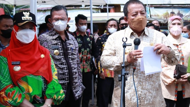 infogeh.co, Bandar Lampung – Walikota Bandar Lampung Hj. Eva Dwiana mendampingi Gubernur Lampung dalam peninjauan operasi minyak goreng murah yang diselenggarakan oleh Pemerintah Provinsi Lampung melalui Dinas Perindustrian dan Perdagangan Provinsi Lampung yang bekerjasama dengan PT. Tunas Baru Lampung di Pasar Kangkung Bandar Lampung, Jumat (14/1/2021).