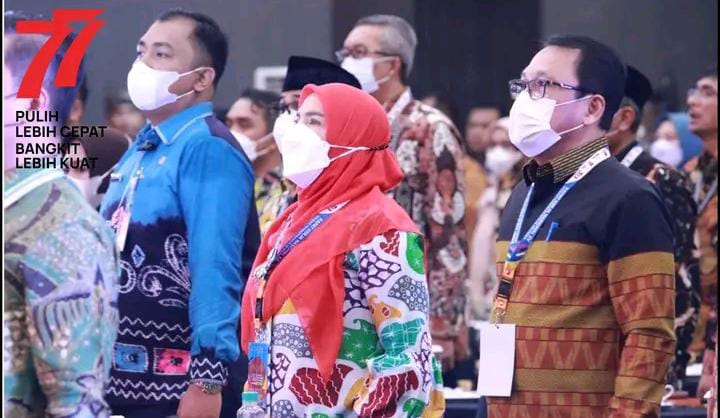 Infogeh.co, Padang – Walikota Bandar Lampung Hj. Eva Dwiana menghadiri acara penutupan Rapat Kerja Nasional (Rakernas) Asosiasi Pemerintah Kota Seluruh Indonesia (APEKSI) XV tahun 2022 di Hotel Trutum Kota Padang, Selasa (09/08/2022).
