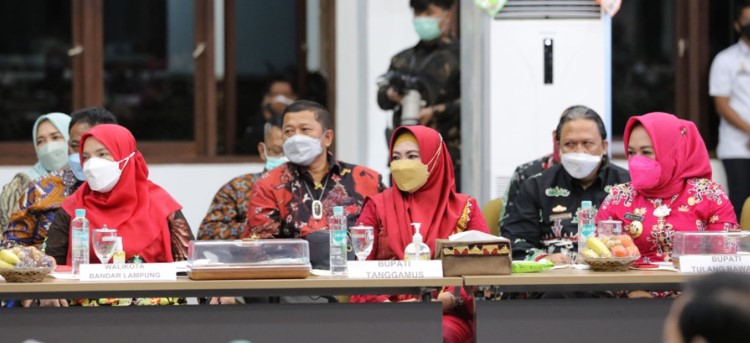infoogeh.co, Bandar Lampung – Walikota Bandar Lampung Hj. Eva Dwiana mengikuti Kunjungan Kerja (Kunker) Menteri Dalam Negeri Muhammad Tito Karnavian ke Provinsi Lampung, di Mahan Agung, Rabu (05/01/2022).