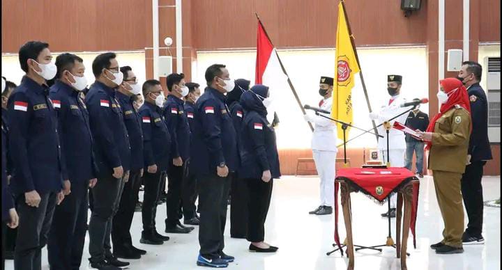 Infogeh.co, BANDAR LAMPUNG – Walikota Bandar Lampung, Hj. Eva Dwiana melakukan Pengukuhan Pengurus Karang Taruna Kota Bandar Lampung Periode 2022-2027 di Gedung Semergou, Selasa (19/07/2022).