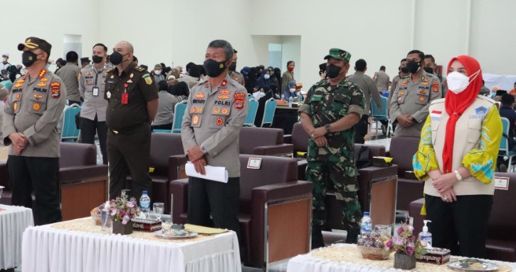 Acara ini dihadiri, Kapolri Jenderal Polisi Drs. Listyo Sigit Prabowo melalui Video Conference sementara di Ballroom GSG UIN tampak Walikota Bandar Lampung Eva Dwiana, Wakapolda Lampung Brigjen Pol Subiyanto, Kapolresta Bandar Lampung Kombes Pol Ino Harianto, Forkopimda serta para pejabat dilingkungan Pemerintah Kota Bandar Lampung.