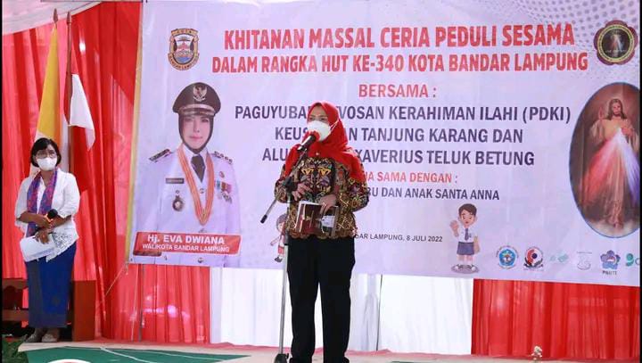 Infogeh.co, BANDAR LAMPUNG – Walikota Bandar Lampung membuka Baksos “Kegiatan Khitanan Massal Ceria Peduli Sesama” yang digelar oleh Paguyuban Devosan Kerahiman Ilahi Santa Perawan Maria Keuskupan Tanjung Karang dan Alumni SMP Xaverius Teluk Betung dalam rangka memperingati HUT Ke – 340 Kota Bandar Lampung, Jum’at (8/7/2022).