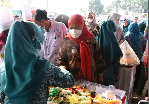 Infogeh.co, BANDAR LAMPUNG – Walikota Bandar Lampung, Hj. Eva Dwiana Membuka Lomba Masakan Tradisional Khas Lampung dan Lomba Jajanan Pasar Tingkat Kelurahan dalam Rangka HUT Kota Bandar Lampung Ke-340 Di Stadion Mini Way Dadi, Kamis (21/07/2022).